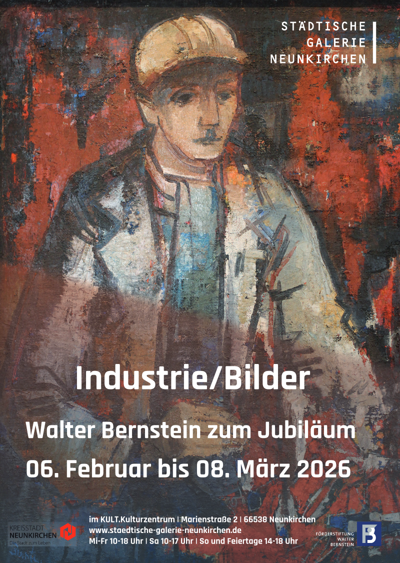 Anlässlich des 125. Geburtstages des Neunkircher Malers Walter Bernstein (1901-1981) zeigt die Städtische Galerie Neunkirchen in Kooperation mit der „Förderstiftung Walter Bernstein“ eine umfassende Jubiläumsausstellung. Der Fokus liegt hierbei auf der Darstellung industrieller Landschaften und Arbeitswelten, bei der Walter Bernstein im Saarland eine bedeutende Stellung einnimmt. Seine Bilder zeugen von einem tiefen Verständnis für die Ästhetik des industriellen Zeitalters und zeigen Fabrikhallen, Förderanlagen und architektonische Strukturen in einem neuen, mitunter poetischen Licht. Immer wieder tritt auch der Mensch in den Mittelpunkt, wird als Bergmann oder Hüttenarbeiter gemeinsam mit anderen bei der schweren Arbeit dargestellt oder in einer Großaufnahme porträtiert.