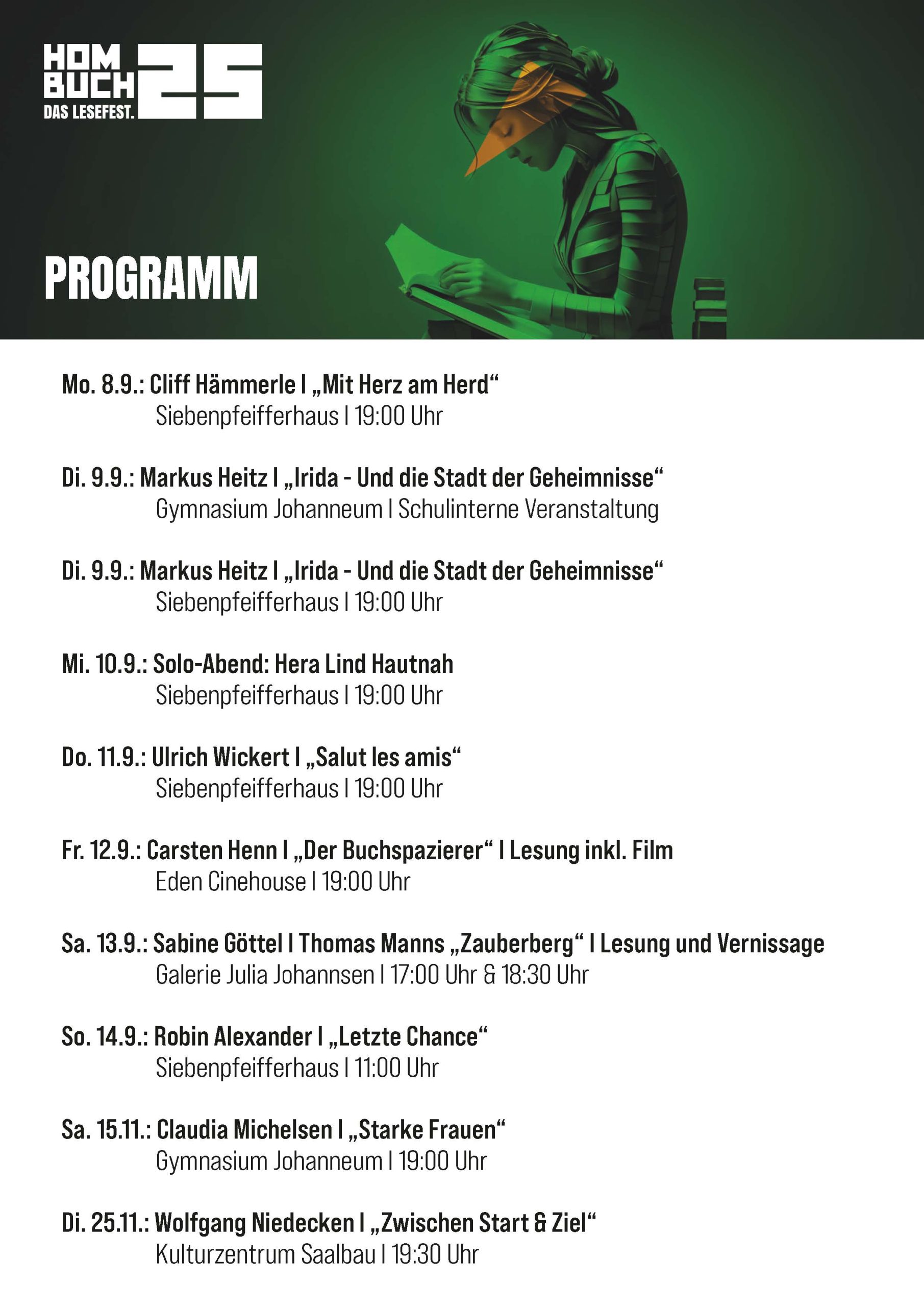 Alle Informationen zum Wettbewerb und zum Programm der HomBuch 25 finden Sie auch unter www.hombuch.de.