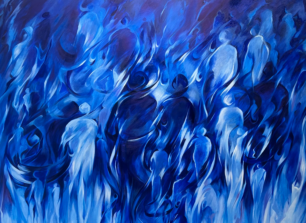 Mahbuba Maqsoodi, Werden, Detail, 2024, Mischtechnik, Acryl und Öl auf Leinwand, 150 x 150 x 4,5 cm © Atelier Maqsoodi