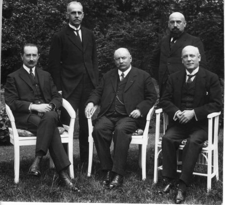 Die vom Völkerbund eingesetzte Regierungskommission des Saarlandes v.l.n.r. Bartolomäus Koßmann, George Washington Stephens, Victor Rault, Jacques Lambert und Dr. Franz Vezensky © Saarl. Landesarchiv, gemeinfrei