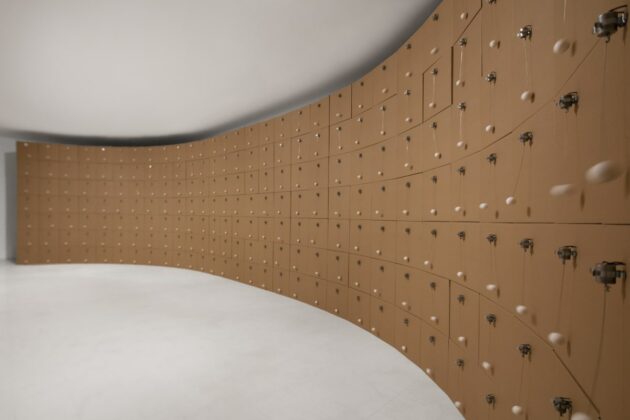 Zimoun, 210 prepared dc-motors cotton balls cardboard boxes, 40x40x40 cm, Stadtgalerie Saarbrücken 2020 © Zimoun