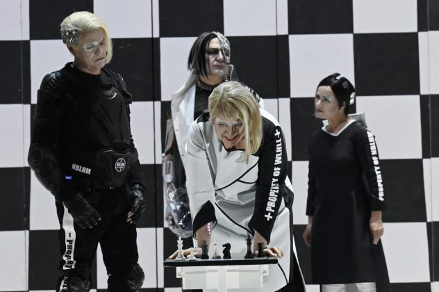 Zwar mischten sich auch diesmal einige Buh-Rufe unter den Applaus, als sich die beiden Regisseurinnen Magdolna Parditka und Alexandra Szerneredy, die auch für Bühnenbild und Kostüme verantwortlich zeichneten, dem Publikum präsentierten. Es ist zweifelsohne ein hochmodernes Regiekonzept, mit dem die beiden Künstlerinnen Wagners Hauptwerk in Szene gesetzt haben. Sie bedienen sich dabei der Künstlichen Intelligenz (KI), die das Bühnenbild mit einschlägigen Begrifflichkeiten bestimmt. Das kommt bei traditionsbewussten WagnerianerInnen nicht durchweg gut an, aber ist es denn in der Tat nicht so, dass so manche der ProtagonistInnen im „Ring“ wie von langer Hand angelegt wirken, also ähnlich wie KI-gesteuert? Jedenfalls ist das Regiekonzept in sich schlüssig und konsequent durchgeführt. Und die Kostüme mit ihrem zum großen Teil uniformistischen Chic sowie das Bühnenbild mit streng geometrisch gestalteten Räumen passen dazu nahtlos. Es lohnt sich in jeder Hinsicht, mit dieser Deutung sich der Tetralogie gedanklich näher auseinanderzusetzen.
