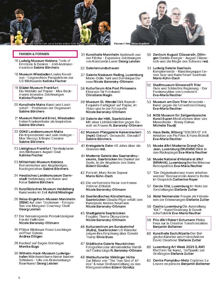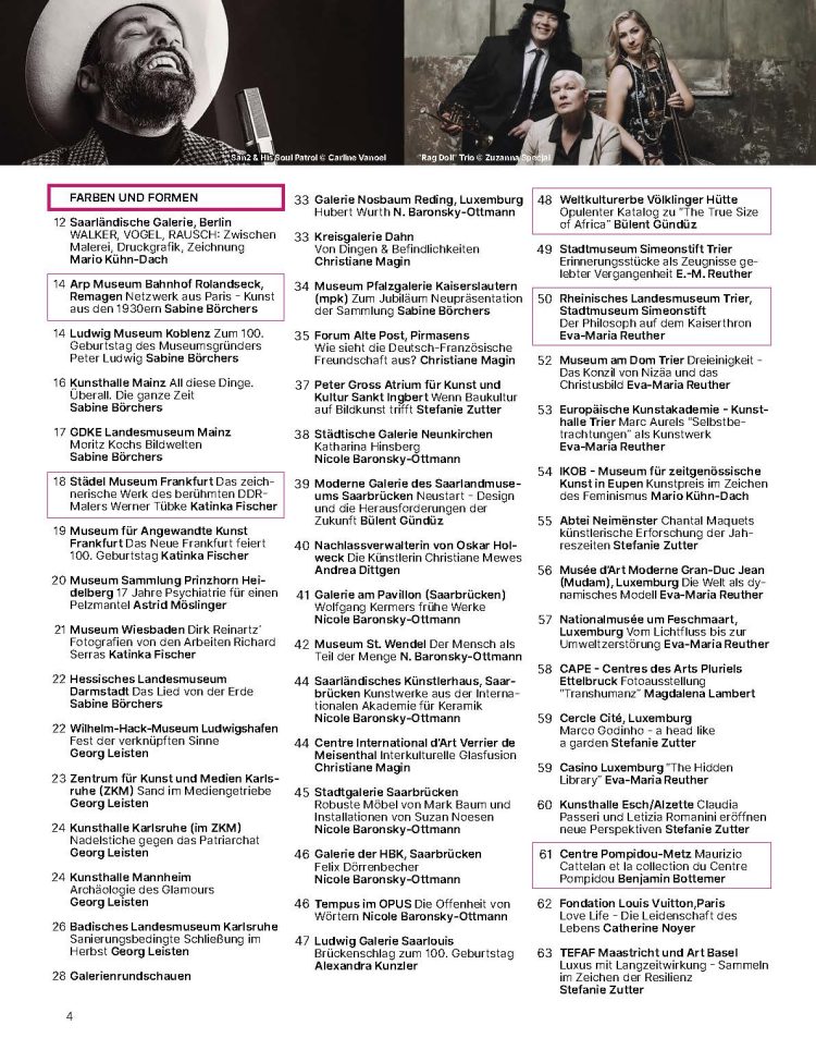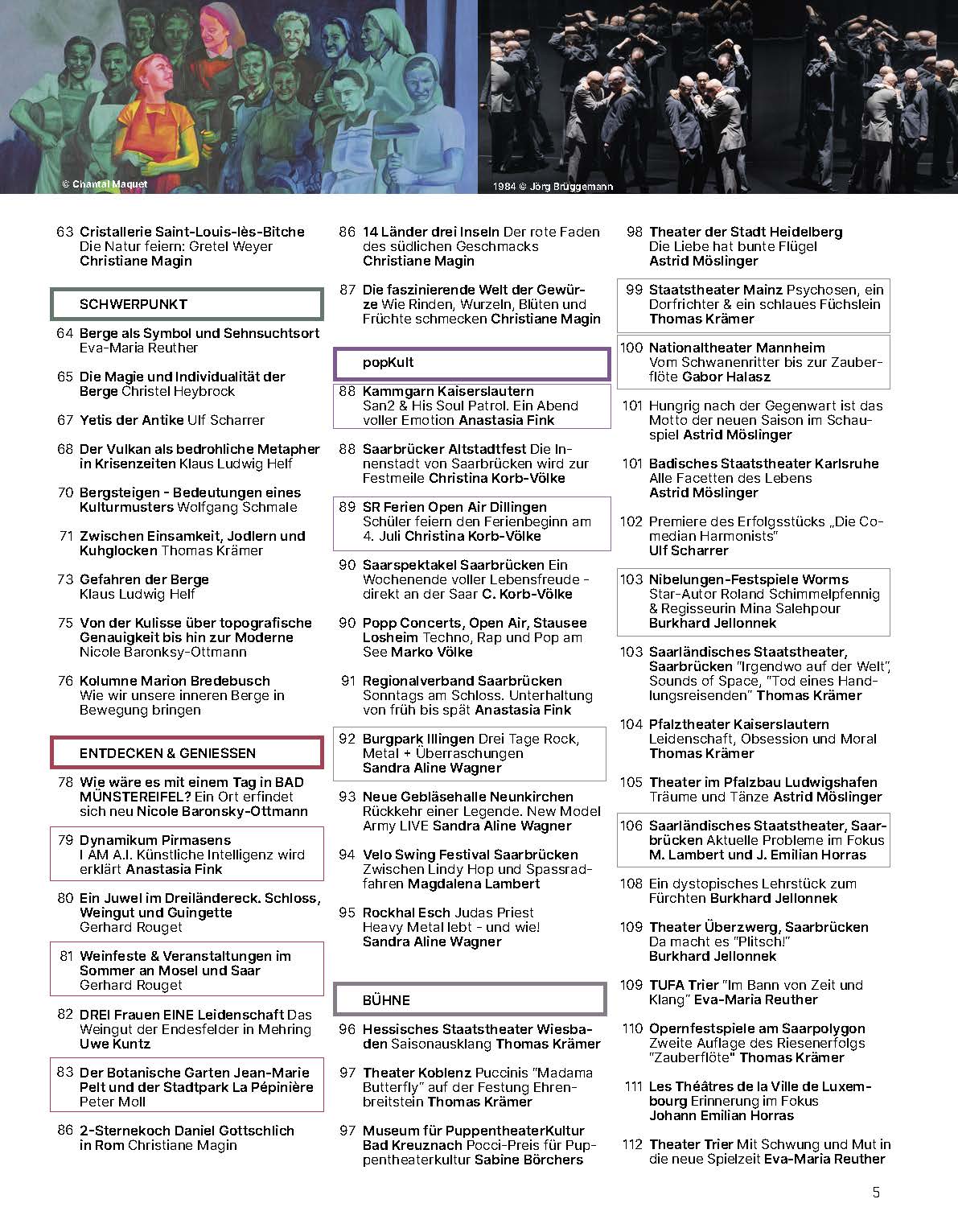 Das OPUS Kulturmagazin enthält aktuelle Kritiken, Veranstaltungshinweise und Beiträge zu den Sparten Bildende Kunst, Theater, Musik, Reisen & Kulinarik, Popkultur, Literatur, Geschichte, Film & Medien, Baukunst, Kulturpolitik, Wissen sowie Namen & Nachrichten. Außerdem behandeln wir in jeder Ausgabe ein wechselndes, brisantes Schwerpunktthema aus unterschiedlichen Expertensichtweisen – immer mit einem intensiven Fokus auf Kultur, aber auch auf andere Fachrichtungen wie Wirtschaft, Gesellschaft, Politik, Medien oder Recht.