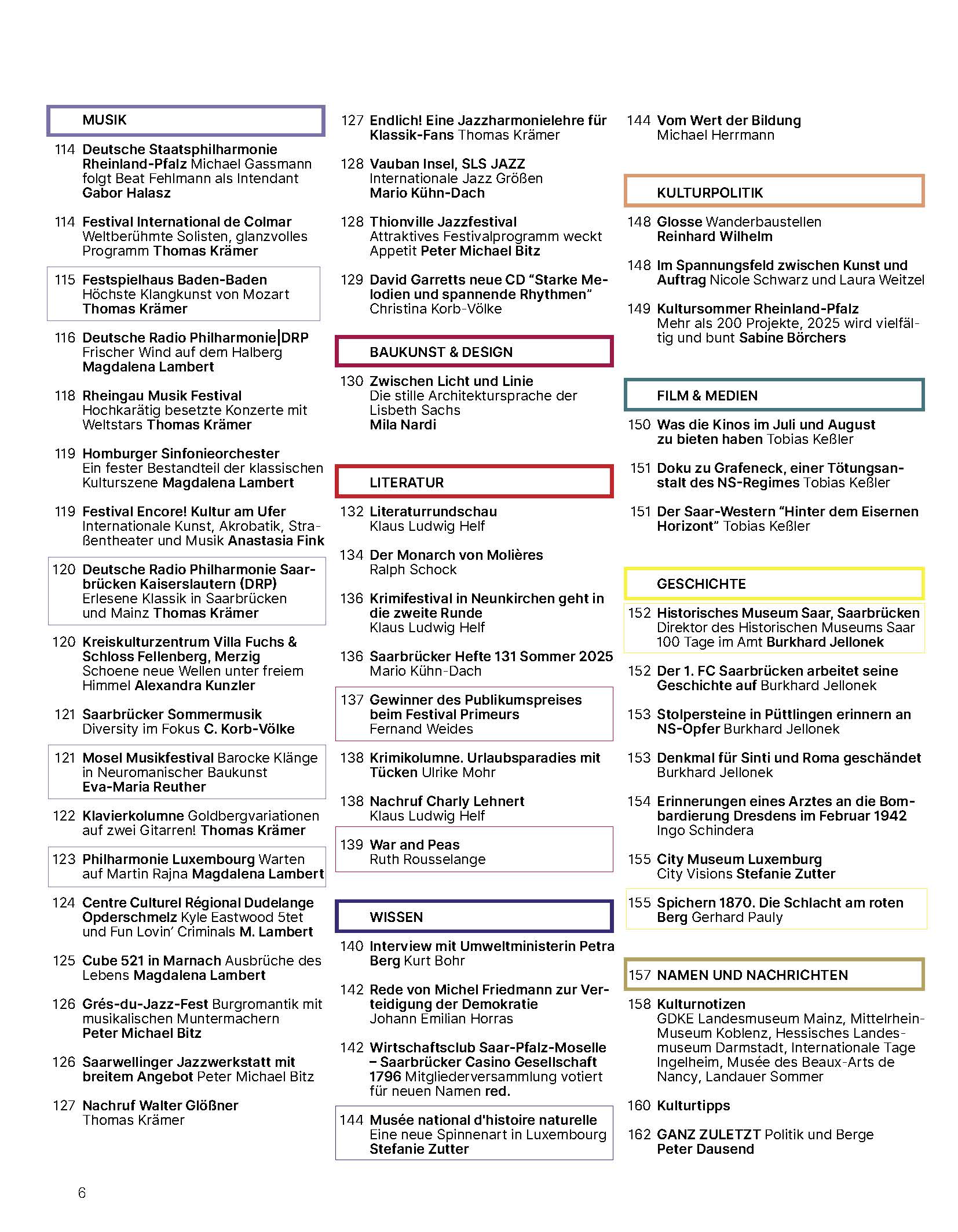 Die jeweiligen Themen des von Ihnen ausgewählten Hefts können Sie dem abgebildeten Inhaltsverzeichnis entnehmen.