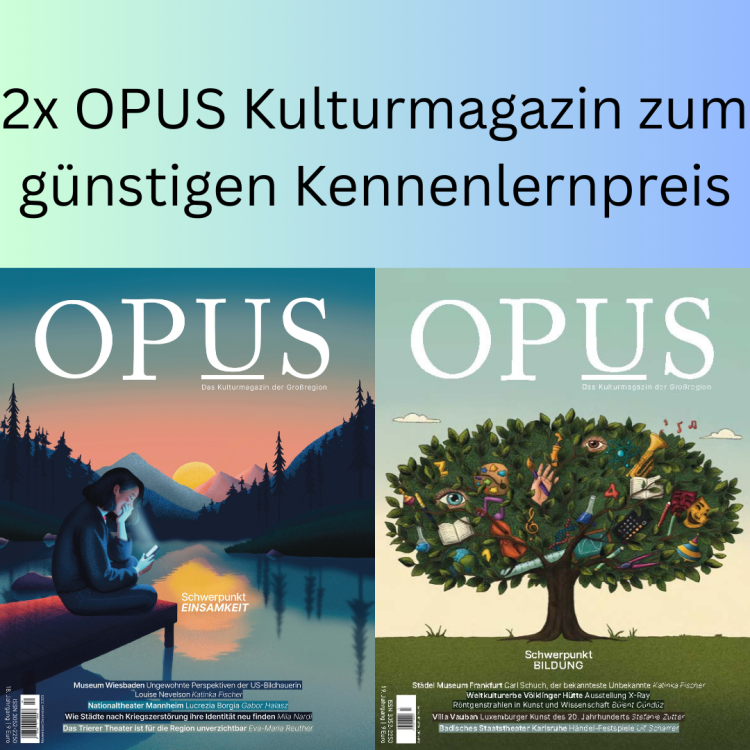 Zwei OPUS-Ausgaben zum günstigen Kennlernpreis von nur 9,90 Euro und überzeugen Sie sich selbst. Anschließend können Sie OPUS ganz bequem zum Preis von jährlich 45 Euro weiter abonnieren. Sollte Ihnen das Magazin nicht gefallen, endet das Schnupper-Abo nach der zweiten Ausgabe.