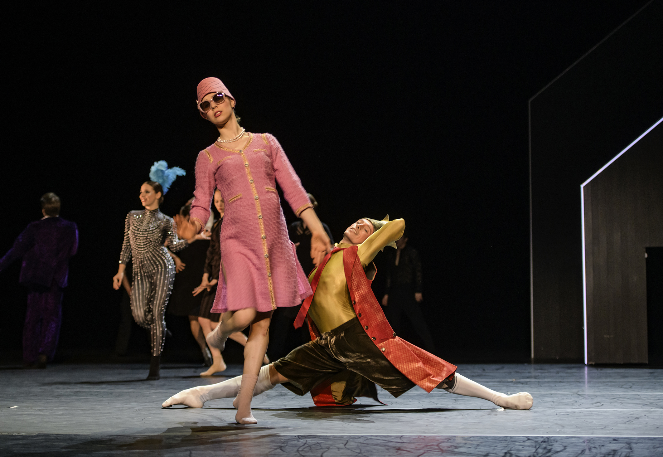 Der Abend begann mit dem Stück „Polish Pieces“, einer Choreografie des berühmten niederländischen Tanzstars Hans van Manen, der über längere Zeit Hauschoreograf des berühmten „Nederlands Danstheater“ war. Wegen der Abstraktion seiner Choreografien wird er bisweilen als Piet Mondrian des Tanztheaters bezeichnet, eine Anmutung, die er in „Polish Pieces“ in eindrucksvoller Weise bestätigt. Die leere Bühne wird von Tänzerinnen in blauen und von Tänzern gelben und roten Kostümen (Mondrian-Farben) im Sturm erobert. Sie tanzen höchst präzise im Takt zu der rhythmisch abstrakten Musik von Henryk Gorecki und formieren sich – wiederum total abstrakt – abwechselnd in Gruppen zu zweit, zu viert oder zu zehnt. Insgesamt ein spannungsvoll eleganter Auftritt in strahlendem Licht nach Einstudierung von Feline van Dijken (Ausstattung von Keso Dekker, Beleuchtung von Joop Caboort). Starker Beifall.