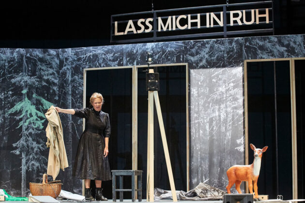 Am Ende fühlt sie sich wie in Opfer. Ausgegrenzt vom Pfarrer, der ihr nicht mehr die Beichte abnehmen will. Ausgegrenzt von ihren Nachbarn, Bekannten, für die sie nicht mehr die Wirtshaustochter Hilde, sondern die Frau des 1944 verstorbenen Gauleiters Josef Bürckel ist, der man nach dem Zusammenbruch des Dritten Reiches in den Einkaufskorb spukt. Wie „damals die Juden“ fühlt sie sich nun, zu Anfang der 1950-er Jahre in Bürckels legendärem Jagdhaus „LassmichinRuh“ im Göllheimer Wald. Jetzt will man ihr sogar die großzügige Villa im Neustadt, am Ende selbst die Pension ihres Mannes streitig machen. Hilde Bürckel – eine Frau zwischen Realitätsverlust und Wahnsinn. Der tief in die Geschichte eingetauchte, in der Region als Kind aufgewachsene Autor Peter Roos zeichnet in seinem am Pfalztheater Kaiserslautern zur Uraufführung gebrachten Schauspiel „Bürckel! – Frau Gauleiter steht ihren Mann!“ ein bedrückendes Bild der Gattin des mächtigsten NS-Politikers zwischen Saarpfalz und Wien. In Susanne Schmelchers knapp zweistündiger Inszenierung bleiben Hilde Bürckel (Hannelore Bähr) nur noch wenige Momente tröstlicher Erinnerung an ihren oft sportlich im flotten Trenchcoat gekleideten Mann, der sich als Mann aus dem Volk inszenierte, dabei aber ein bohèmehaftes Leben zwischen der Pfalz, Wien und Berlin mit Cabriolet und Flugzeug führte. Verziehen hat sie ihm nie, dass er Affairen ohne Ende, mit seiner Maitresse in der Saarbrücker Feldmannstraße ein Liebesnest gemietet hatte, während sie allein zuhaus mit den beiden Söhnen saß. Die Deportation der Juden aus der Pfalz wie aus dem Saargebiet kommt ihr immer wieder über die Lippen, doch versucht sie, ihren Mann reinzuwaschen, habe er doch keinem persönlich auch nur ein Haar gekrümmt. Er habe ja nur vermeldet, dass der Gau Saarpfalz wie später die österreichische Ostmark „judenfrei“ gemacht worden seien, am Ende kam auch noch Lothringen hinzu.